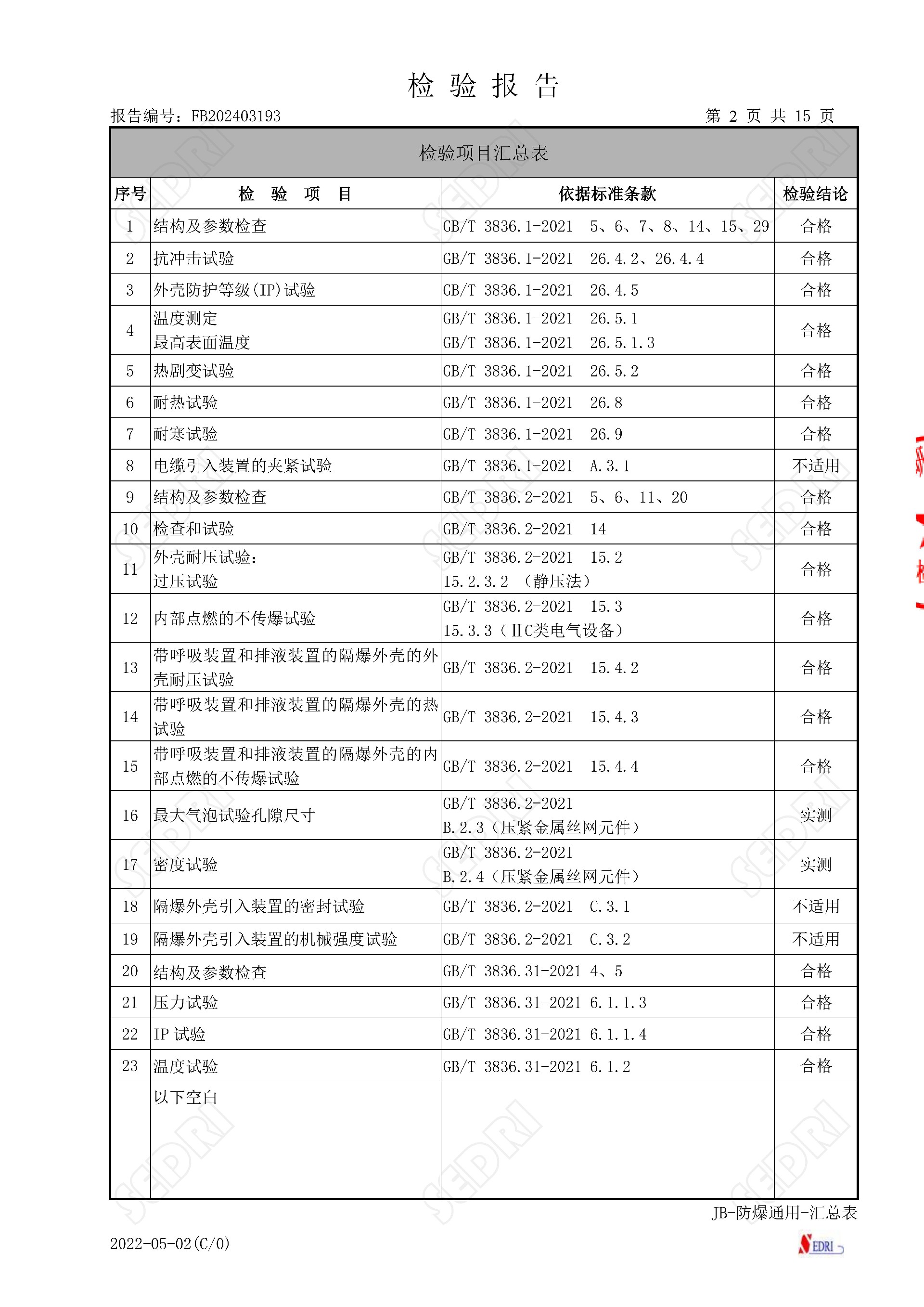 氣體檢測探測器型式試驗報告證書